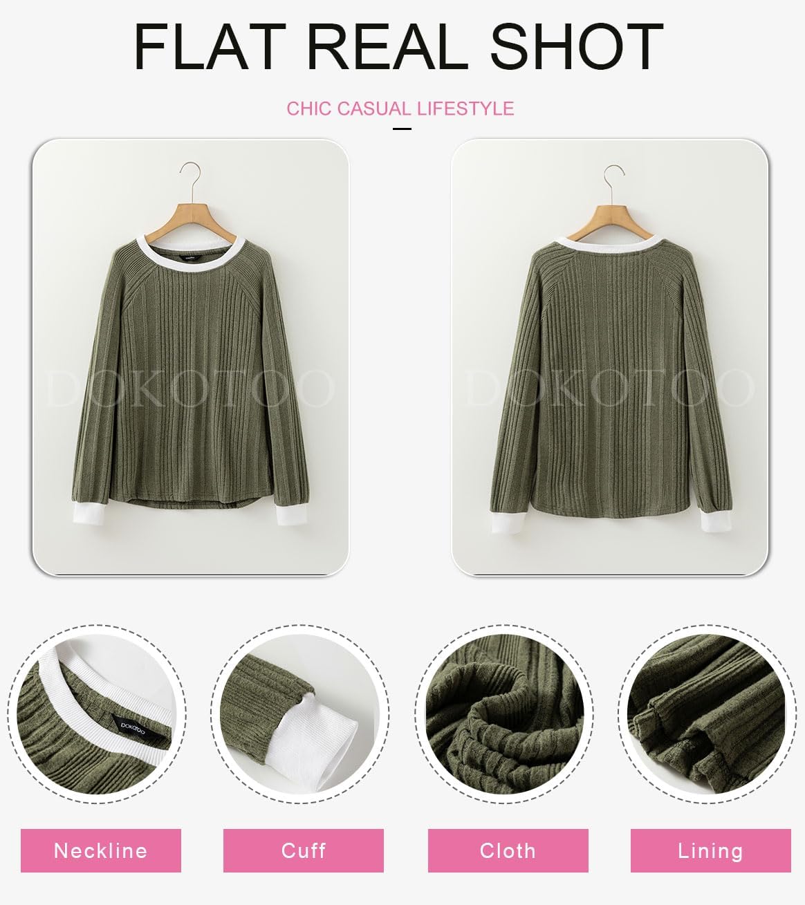 Dokotoo Long Sleeve Shirts for Women Casual Fashion Loose Fit Womens Tops Crewneck Basic Pullover Tunics