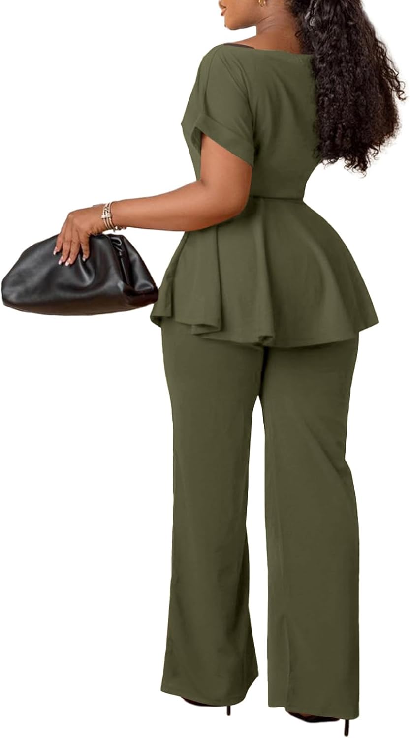 Ekaliy Women’s Two Piece Outfits Suit Set Peplum Top and Pants Set