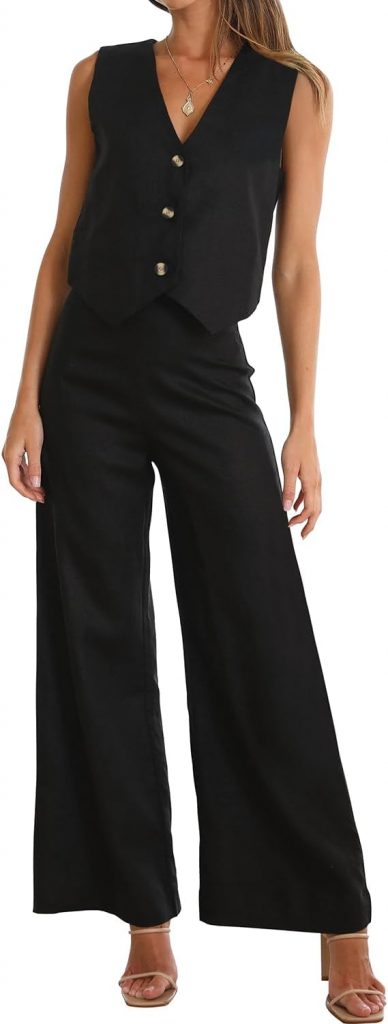 ROYLAMP Women’s Summer 2 Piece Outfits with sandals and a sun hat for a casual