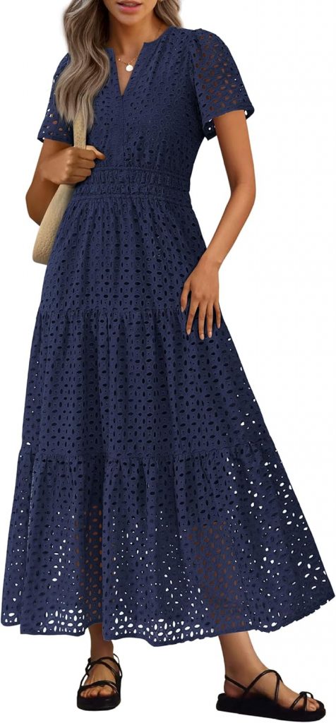 Product description PRETTYGARDEN Long Flowy Dress for Women Eyelet Maxi Beach Vacation Dress PRETTYGARDEN Summer