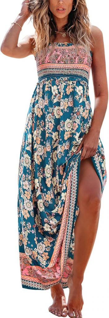 Product description Colorful ditsy floral adjustable straps smocked maxi dress for womenbe Beach dress: you