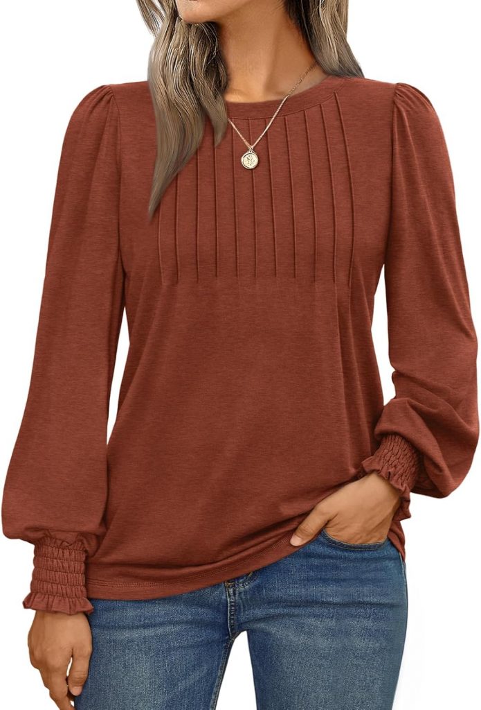 Product description Fall Sweaters for Women Fashion 2025 Long Sleeve Shirts Tops with Side Shirring