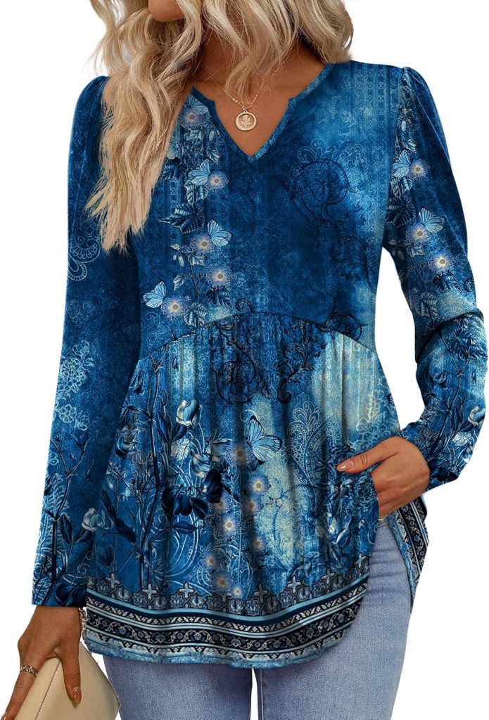 WIHOLL Womens Tops Long Sleeve Fall Shirts Babydoll Peplum Tops for Women V Neck Tunic Dressy Casual Blouses