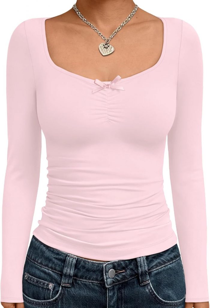 Trendy Queen Tshirts Shirts for Women Double Lined Going Out Crop Tops 2025 Spring Summer Workout Y2k Clothes Beach Fashion